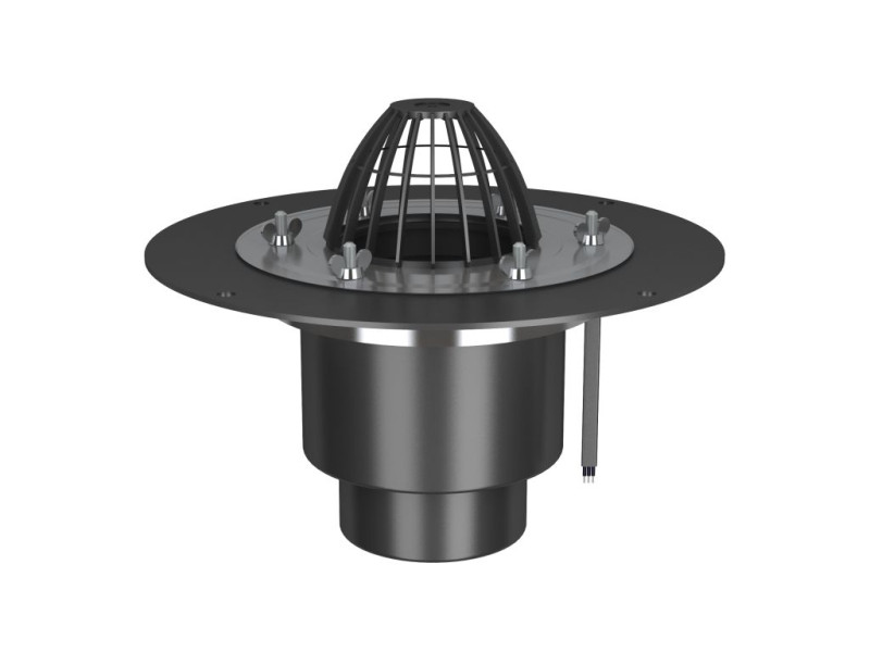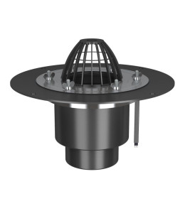 Кровельная воронка с листвоуловителем, с обжимным фланцем из нержавеющей стали и фартуком из ПВХ мембраны. Применяется для всех типов гидроизоляционных материалов. Воронка